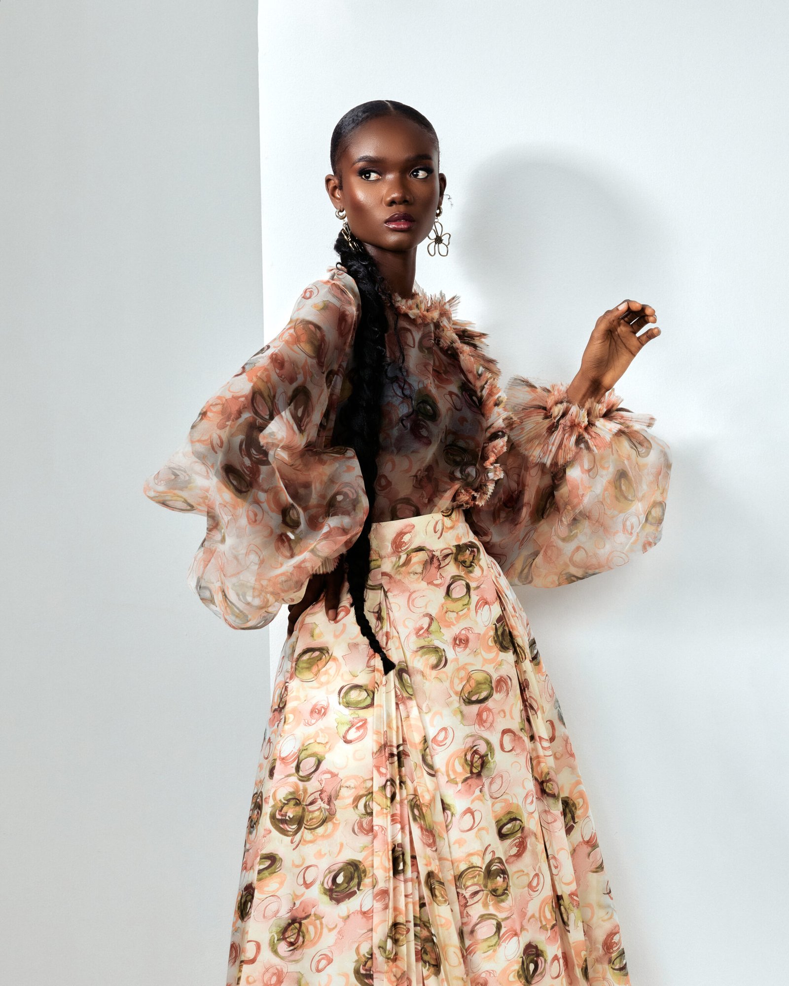 Our latest collection draws inspirations from a mesmerizing world of color, variety of luminous textures of fabrics offering dramatic silhouettes and artistic prints that exude strength and empowerment.