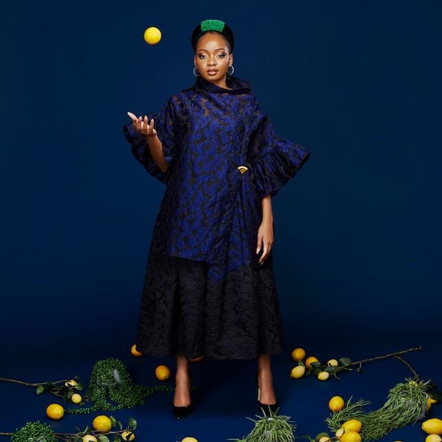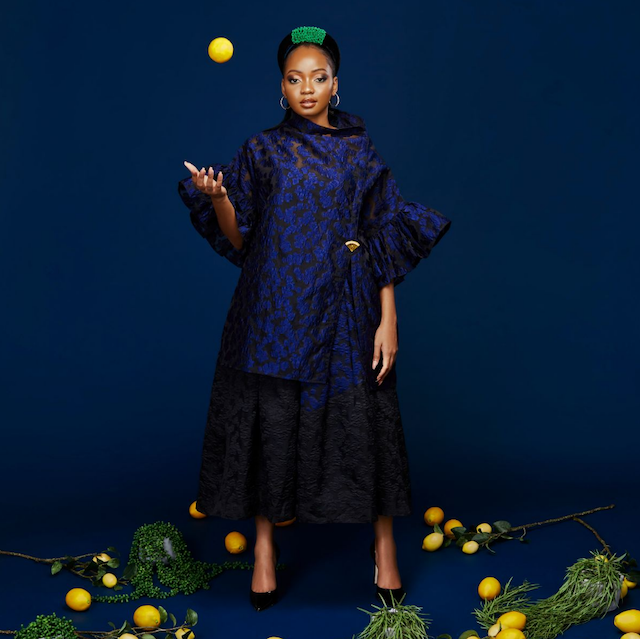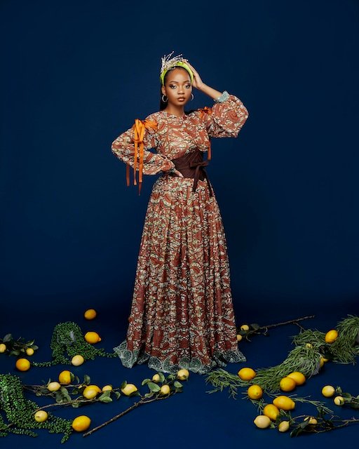 Autumn Winter 2020 Once upon a Season, The OC woman finds herself in the World of Citrus. Plucking the ripped cuffs off the sprouted sleeves from the tree, she bends to arrange her pleated skirts in rows of circular flounce, and carries them into the cuisine of modernized Heian kimonos, accompanied by the Bishopric sleeves. With one sway, she peels the symmetrical lines of the robes. With another, she slices them into tiered straps, and have the Nsubura squeezed into the glass to serve the Creme de la Creme with spices of Navy, brown and Marmalade.
