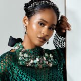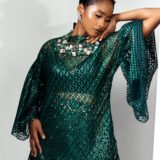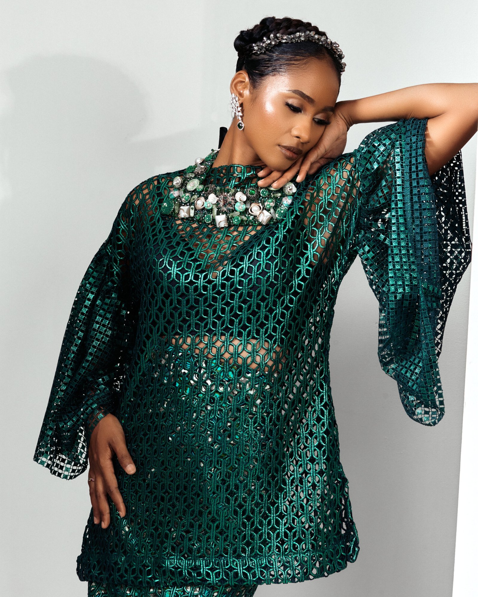 Green Lace Sheer Blouse Scallop edge neckline with a full detailed sleeve