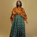 Malaika Vintage Raglan Silk gown with a combination of Plain organza silk and Printed organza silk .