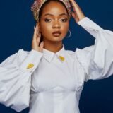 Cotton puff long sleeve shirt with an empire cut and a580 pleated detailed waist; paired with a lemon brooch on the color and sleeves